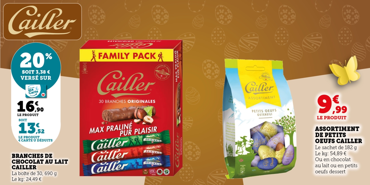 Pour une fête de Pâques pleine de finesse et de gourmandise, vos magasins U de Thoiry, Etrembières et Neydens vous proposent une sélection des plus grandes marques de chocolat suisse, reconnues pour leur savoir-faire d’exception et la qualité de leurs créations.