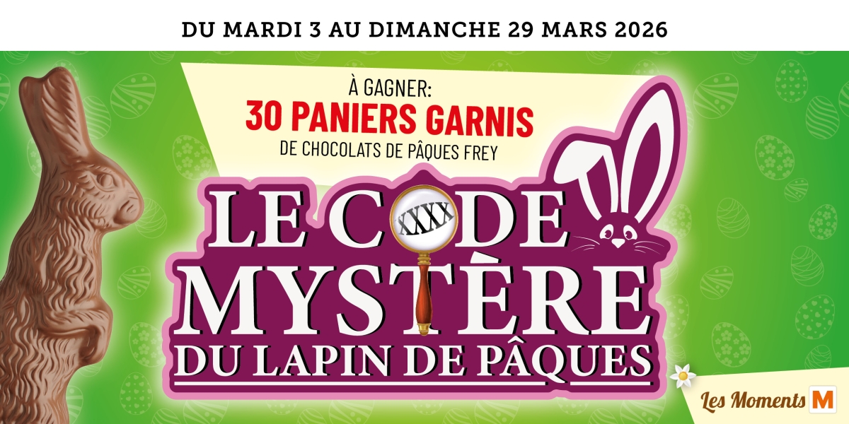 Participez à notre grand jeu Le Code Mystère du Lapin de Pâques et tentez de remporter l’un des 30 paniers garnis de chocolats de Pâques FREY mis en jeu !
